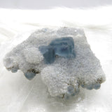 From a recently new find in China, these uniquely-modified Fluorites are taking over the center stage by storm. Seated on a snowy white quartz matrix, these Morandi “QR Code” Fluorites’ surface show a one-of-its-kind etching, a modification resulting in an uneven surface that bears such a strong resemblance to QR Code that it’s earned its namesake.