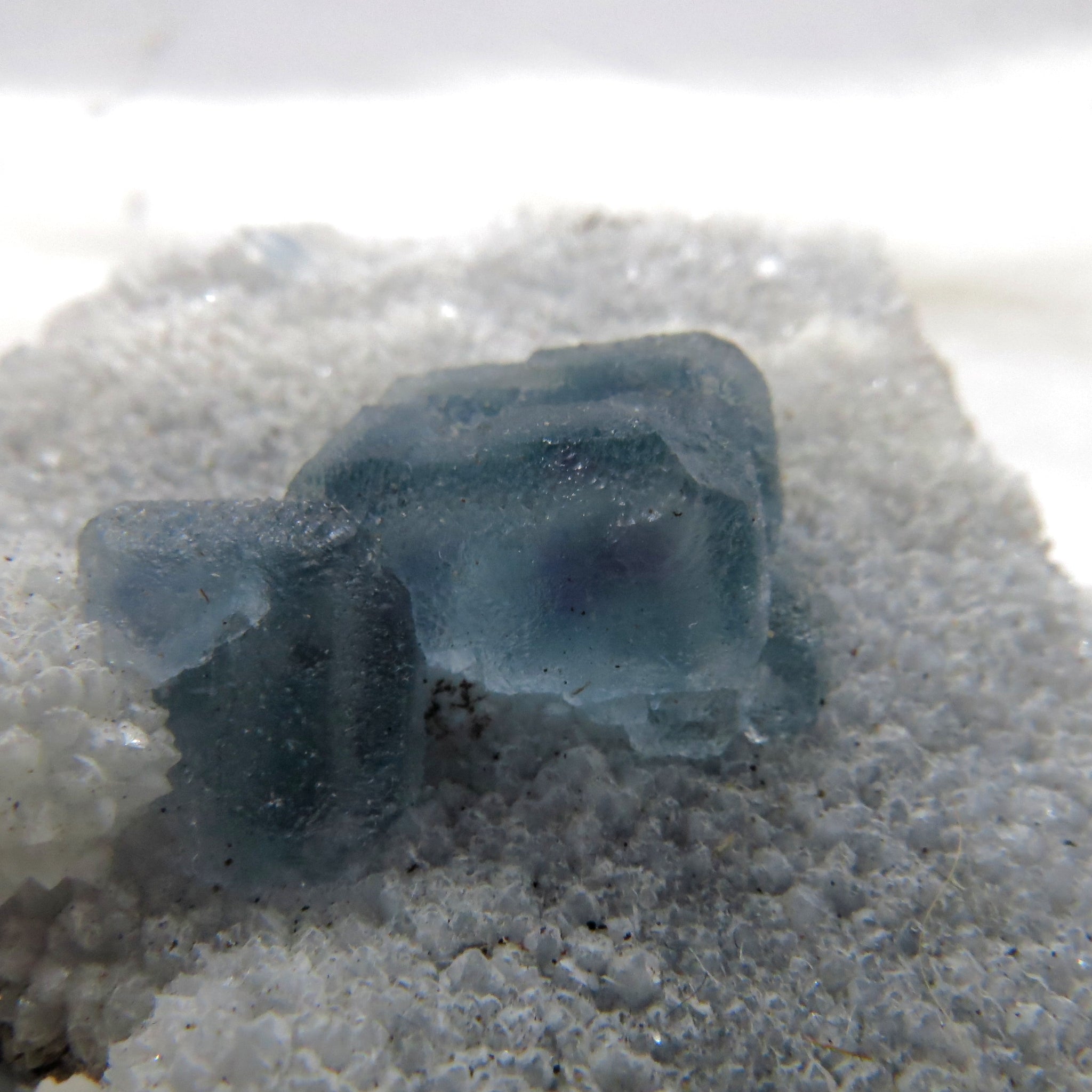 Presenting itself between different shades of green-blue and purple, and sometimes an elegant mix of both, QR Code Fluorites exhibit strongly polycrystalline surfaces with raised hillock edges, the beauty of it is enhanced tenfold under a loupe’s magnification.