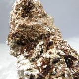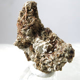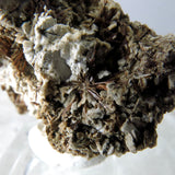 More often found as inclusions in different matrix, commonly Feldspar, Albite or Aegirine as chaotic, rain-like or radiating aggregates; Here it is presented as free growth Astrophyllite "stars" perched on Feldspar matrix. Aesthetic fur-like stars can easily be confused with free growth rutile.