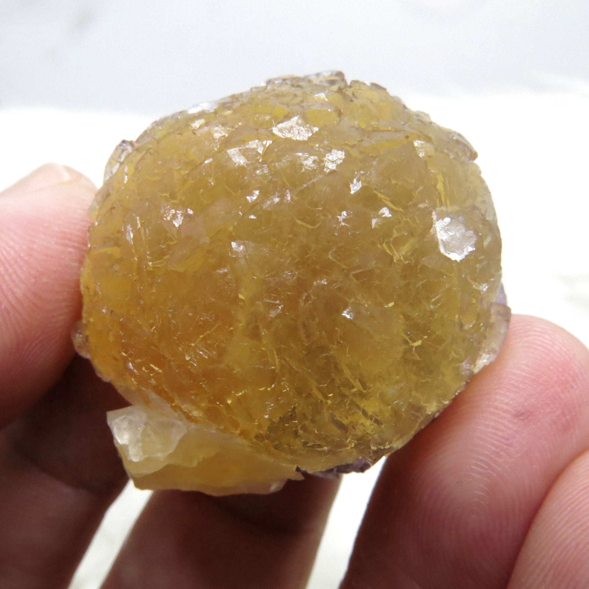The magic does not end there. Lustrous and bright yellow, the surface of these botryoidal Fluorites tell another story: stepped growth resembling trigonal habit, it adds a whole new layer of complexity to these specimens. On some of the edges you can see purple phantoms as well.